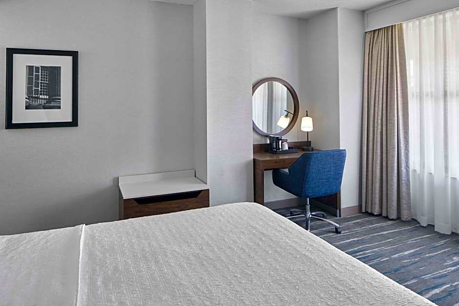 As you step into the hotel, you'll be greeted by a 24-hour front desk and a friendly staff ready to assist you in any way. The Hampton Inn & Suites offers a range of amenities to ensure your comfort and convenience. Take a dip in the indoor swimming pool or unwind in the hot tub. Stay connected with the hotel's wifi (extra charges apply) and catch up on work in the business center (free). The fitness center is available for those who want to stay active during their stay.